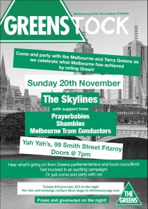 The Prayerbabies will be appearing at a benefit gig for the Greens ‘Greenstock’ at Yah Yah’s, 99 Smith Street, Fitzroy, Sunday 20 November from 7pm.